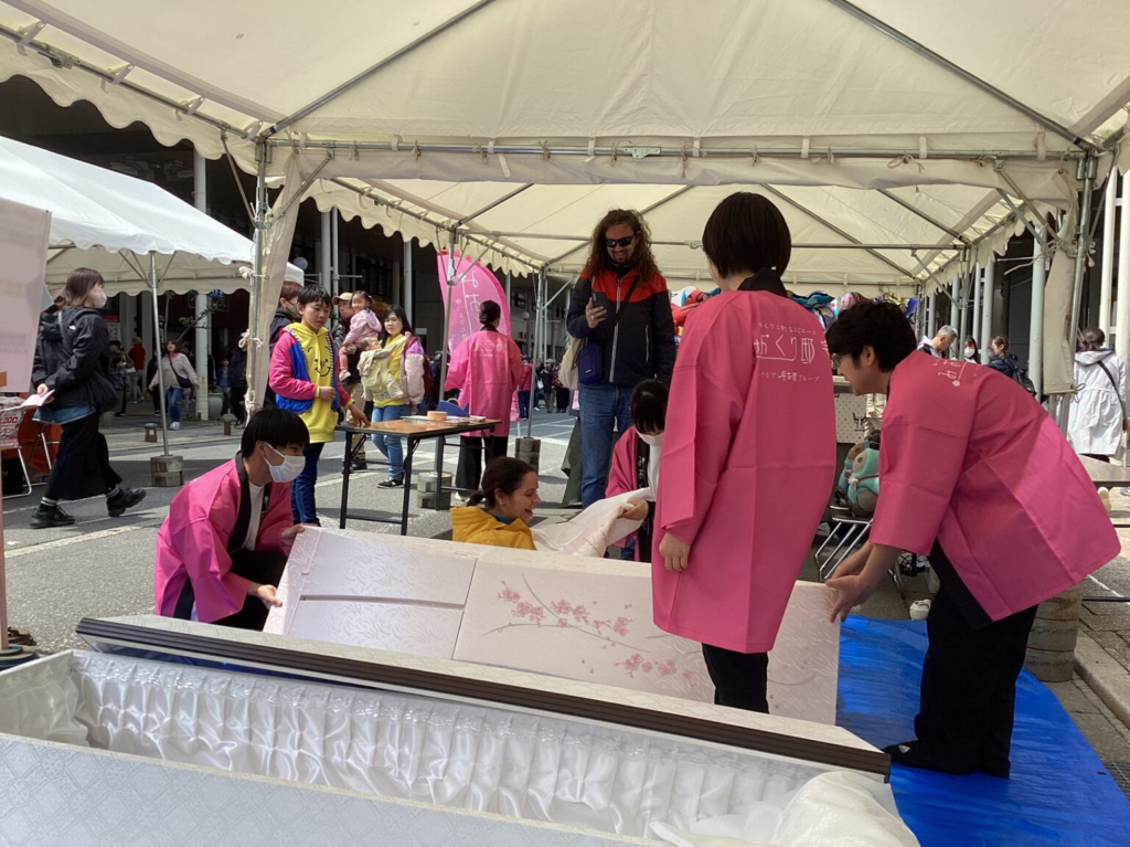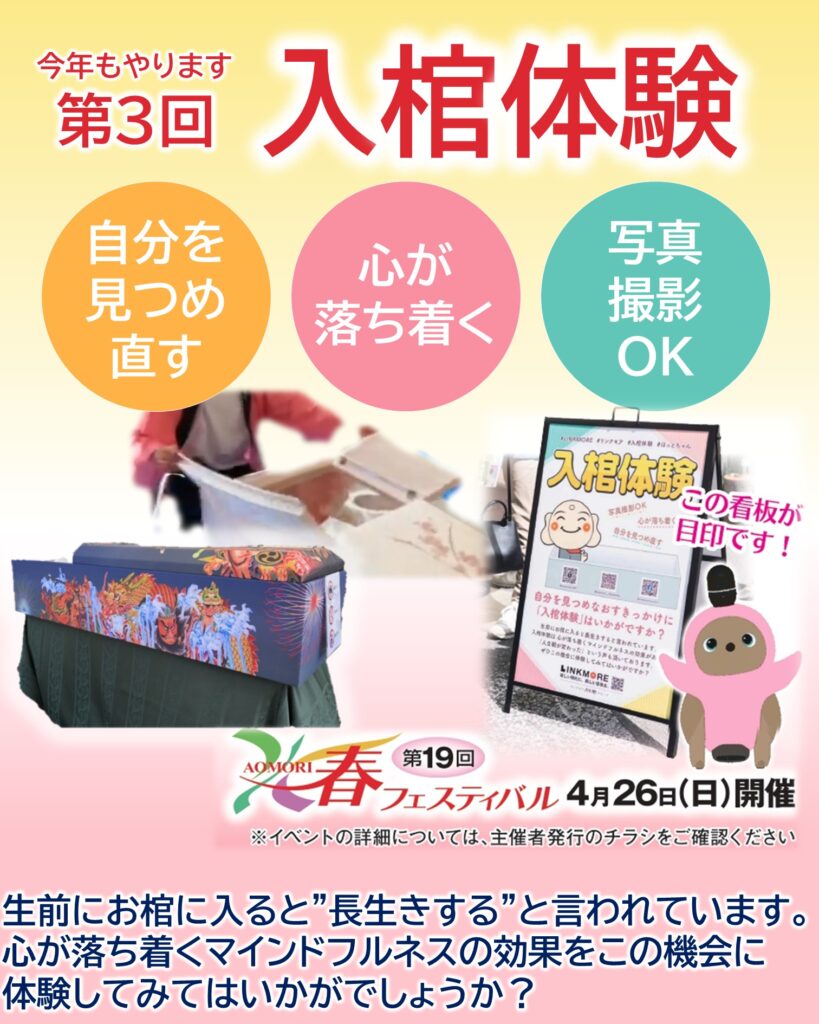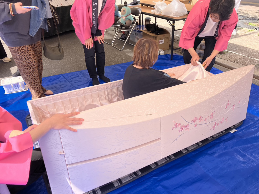 イベントにはリンクモアも参加し、実際に棺に入ってみる入棺体験を行います!