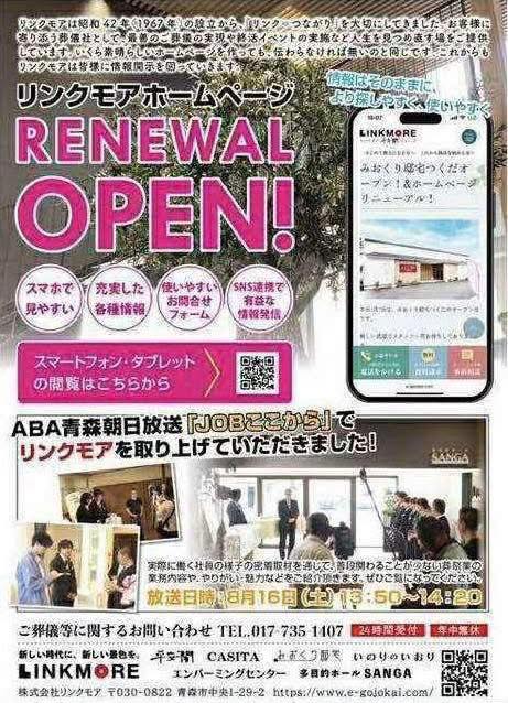 60周年(2026年)に、リンクモアは青森市の頂点に立ちます。未来へチャレンジします!葬儀供養ビジネスの集客は待ちから攻めに仕掛けていくマーケティングの時代になりました。2012年には県外大手互助会も進出してハードを中心にした強引で執拗な会員募集で市場占有率を高めております。こうした厳しい環境の中、当社はおかげさまで2016年に50周年を迎えました。社名もこれを機に「リンクモア」に変更しました。これまでも、これからも「青森を元気に」を愛言葉に、地域密着型の企業として絆を太くして行こうとあらためてコミットいたしました。