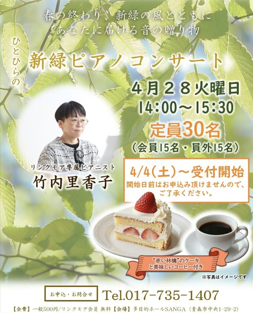 【4月28日開催!】新緑ピアノコンサート🍃