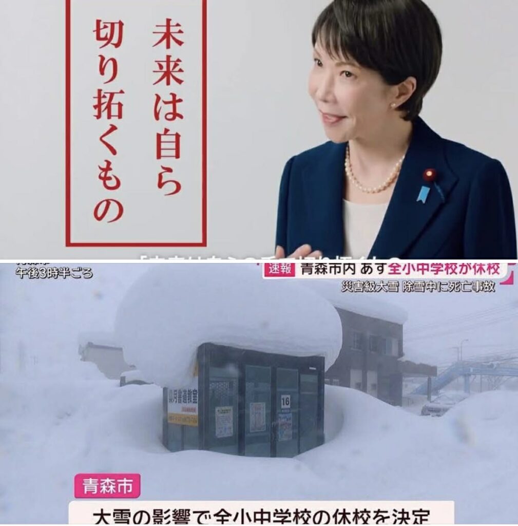 (こういうメッセージを発信して欲しいものです) 青森を、雪に強く豊かに。  ̄V ̄ ̄ ̄ ̄ ̄ ̄ ̄ ̄ ̄ ̄ 「挑戦しない青森」に「未来」はありません。 「守るだけの除雪」に「希望」は生まれません。 「青森の未来は自らの手で切り拓くもの」 政治家はその先頭に立ちます。 逃げません。ぶれません。ひたすらに除雪します。 頑張る人が報われ、困った時には助け合い、 夢を持って働ける青森へ。 青森を、雪に強く豊かに。 青森の皆様とともに。