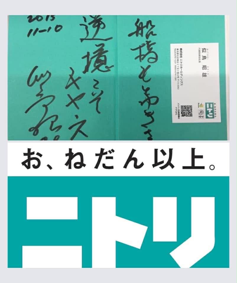 10年前に掲載されました日経「私の履歴書」は忘れることができない刺激的な連載でした。「運は創るもの」も出版になり、日本経済新聞社主催の帝国ホテルで開催した「世界会議」で似鳥昭雄社長から本にサインをしてもらいました。資金調達の苦労話や、ライバル会社出現による赤字…いつも死ぬことばかり考えていた似鳥社長。どん底の暗闇に光を当てたのは米国店の家具視察セミナーです。似鳥社長が視察で感激した米国の家にあるウォーインクローゼットは今は当たり前です。しっかりとしたコーディネイトで便利さと安さを追求すると日本でも流行ると確信を持って実行に移したからこそ今の「ニトリ」があります。飛ぶ鳥を落とす勢いのニトリの原動力は「たゆまぬ挑戦」です。Don’t be afraid to give your best to what seemingly are small jobs. Every time you conquer one it makes you that much stronger. If you do the little jobs well, the big ones will tend to take care of themselves.www.e-gojokai.com/