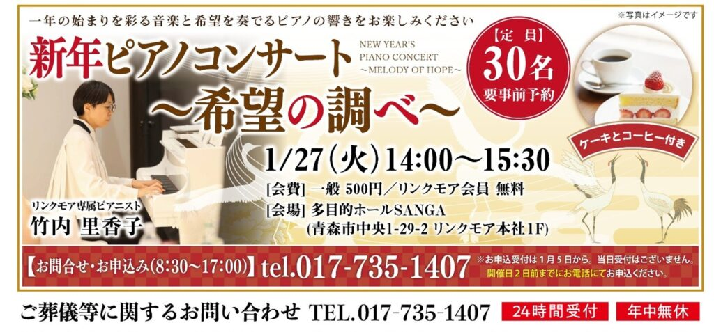1月27日14時から本社サンガホールにてピアノコンサートを開催します!